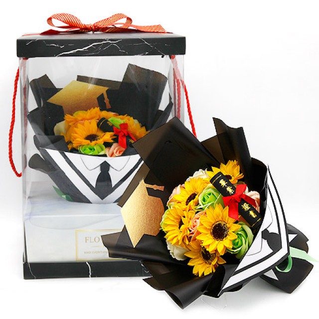 獨家畢業帽服向日葵玫瑰香皂花束 心願網路花店